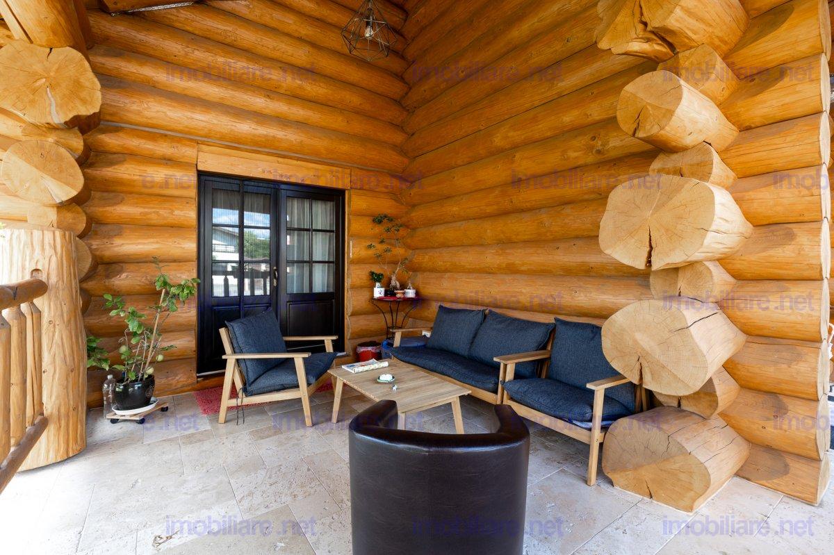 Refugiu canadian din lemn masiv – oaza premium la 10 min de Brașov Imaginați-vă cum ar fi să vă treziți în mirosul cald al lemnului natural, cu panorama Munților Ciucaș pe fundal și întreaga curte scăldată în soare. În Hărman, la doar câteva minute de agitația orașului Brașov, vă așteaptă o proprietate spectaculoasă, creată pentru cei care nu acceptă compromisuri; De ce această casă este unică • Construcție canadiană din lemn masiv – eficiență energetică superioară, aer sănătos și o estetică inconfundabilă. • Travertin natural pe fațadă, soclu și în toate zonele interioare traficate, pentru un look de revistă care rezistă în timp. • Suprafață totală teren 1.200 m² – grădină matură, curte pavată, terase generoase și două accese auto independente cu porți automatizate. • 314 m² construiți (354 m² utili) împărțiți ideal între: • Casă principală (179 m²): • living luminos cu ferestre ample • 2 dormitoare (master cu baie privată & dressing) • baie de oaspeți elegantă • bucătărie + cămară, cameră tehnică • etaj open-space de 70 m² – gata să devină home-office, sală de fitness sau încă două dormitoare • Casă de oaspeți (66 m²) cu terasă acoperită, bucătărie completă și beci tip cramă – locul perfect pentru musafiri sau chirie Airbnb. • Garaj + magazie (69 m²) cu toaletă proprie și generator automatizat – liniște totală în caz de pene de curent. Tehnologie & confort de top • Încălzire în pardoseală Rehau în toată casa, controlată de pe telefon. • Două centrale (gaz + electrică de rezervă) în anexa pentru independență maximă. • Sistem video 12 camere, unele cu audio, plus iluminat exterior inteligent – siguranță 24/7. • Irigare automată cu rezervor pluvial de 6.000 l – gazon mereu verde, costuri minime. Stil de viață • Terasă principală orientată spre sud-vest – apusuri superbe la fiecare cină. • Bucătărie de vară complet echipată + barbeque, ideală pentru petreceri. • Curte plană perfectă pentru piscină, teren de joacă sau grădină bio.