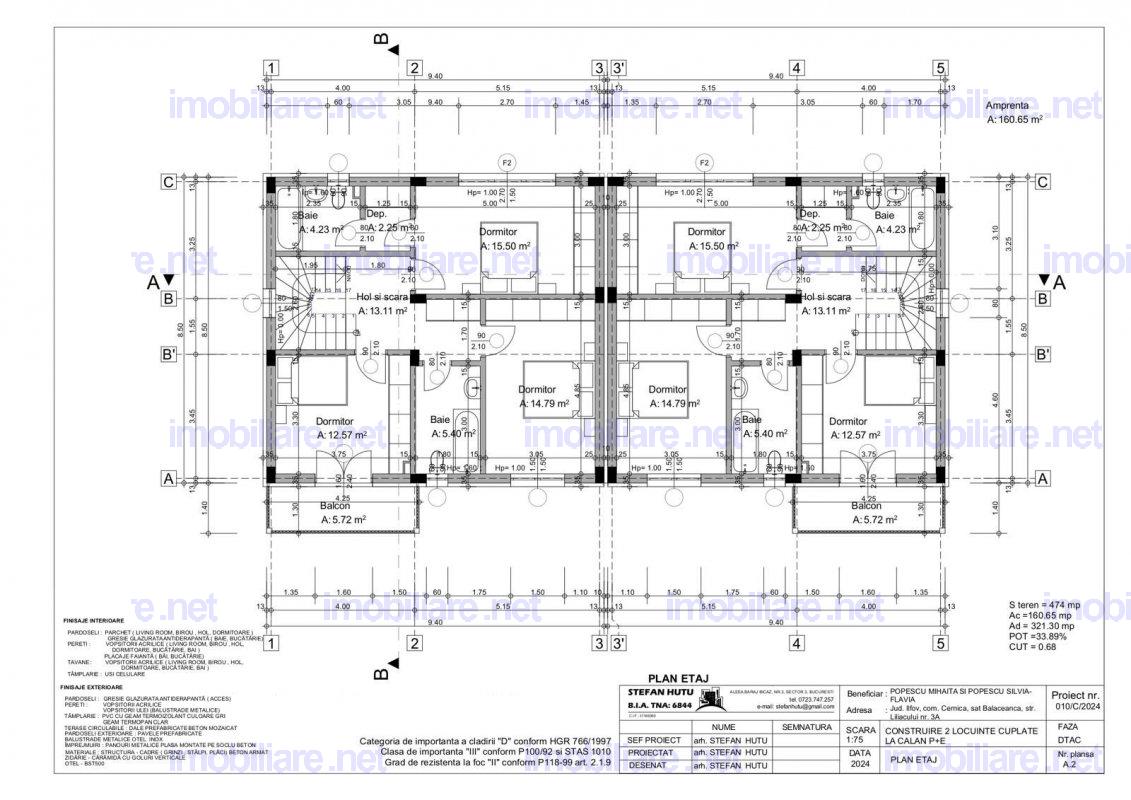 Proprietar vând casă cuplată la calcan tip duplex an construcție 2024, în comuna Cernica, sat Bălăceanca, strada Liliacului, nr. 3A, în suprafață de 160 mp, P+E, structurată astfel: Parter living cu suprafața de 23,28 mp bucătărie cu suprafața de 15,56 mp debara cu suprafața de 2,25 mp cameră tehnica + spălătorie cu suprafața 5,67 mp baie cu suprafața de 4,23 mp hol si scară cu suprafața de 16,13 mp Etaj dormitor matrimonial cu suprafața de 15,50 mp + dressing cu suprafața de 2,25 mp + baie cu suprafața de 4,23 mp dormitor 2 cu suprafața de 14,79 mp dormitor 3 cu suprafața de 12,57 mp cu ieșire în balcon- care are suprafața de 5,72 mp baie etaj cu suprafața de 5,40 mp hol cu suprafața de 13,11 mp Curte utilă 157 mp pentru fiecare casă. Fiecare casă e racordată la apă + canal, energie electrică 380V, gaze naturale, cablu TV și internet. Casa este construită din cărămidă, este placată cu polistiren de 10 cm EPS 80, tâmplăria este Salamander tripan, toate materialele folosite sunt de bună calitate și pot oferi celor interesați poze și filmări cu fiecare etapă a construcției. Casa se predă la alb în interior, cu prize și întrerupătoare montate și funcționale, cu centrală termică și sistem de încălzire în pardoseală funcțional, iar la exterior este finalizată complet la stadiul de cheie. Locația este ideală și se află în interiorul localității cu acces facil către oraș. Mijloace de transport în comun: STV către metrou Anghel Saligny și metrou Pantelimon. Facilități generale: minimarket Profi la 100m, grădiniță cu program prelungit, școală modernă cu sală de sport, outlet Fashion House Pallady la doar 1 km de localitate, centru comercial la doar 8 min distanță cu mașina (Kaufland, Auchan, Lidl, Metro, IKEA, Leroy Merlin, Dedeman, McDonald’s, KFC, etc.) Localitatea Bălăceanca are avantajul de a avea ieșire și intrare pe Autostrada Soarelui, pe Centura București și A0. Sacrificați puțin timp și veniți la o vizionare- vă asigur că nu veți regret
