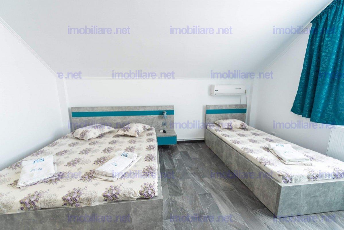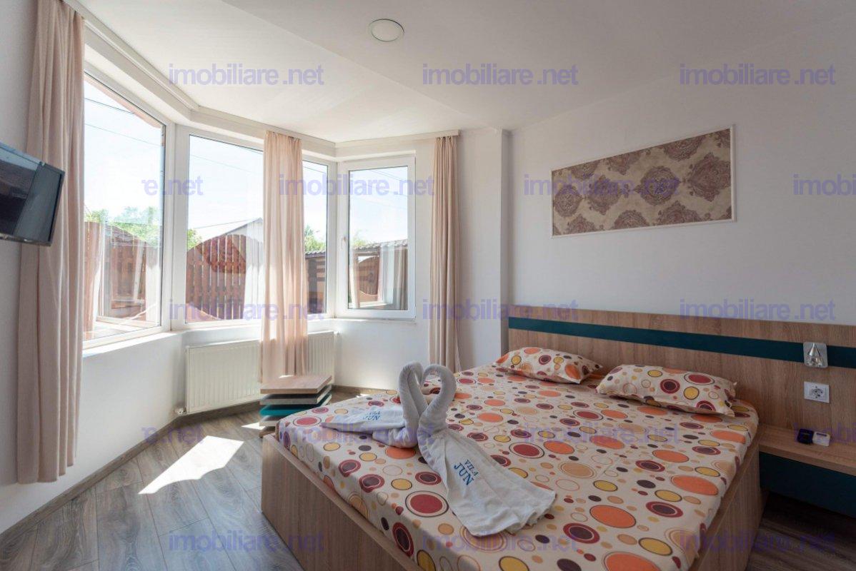 Ofer spre vânzare o casa vila pensiune ( Vila Jun ) renovata 2025, dispune de 8 camere cu baie proprie 20 LOCURI ( 4 camere duble si 4 camere triple tip studio cu chicinete si bai private fiecare camera ), situată în cartierul nou de case din Eforie Nord, pe o stradă asfaltată și liniștită, poziționată pe colț cu acces rapid către plajă și principalele puncte de interes. Imobilul beneficiază de toate utilitățile la locație: apă, canalizare, electricitate și gaz. Locatia este libera de sarcini, se poate face credit bancar. Caracteristici generale ale proprietății • Teren: 300 mp • Compartimentare ideală pentru turism cat si pentru o familie numeroasa • 4 camere duble (câte 2 pe fiecare etaj) cu baie proprie privata • 4 camere triple (câte 2 pe fiecare etaj) cu baie proprie privata • Holuri generoase, luminoase • Bucătărie complet utilată de 12 mp la interior • Foișor de 16 mp dotat cu grătar, aragaz și lavoar • Anexă cu baie proprie, zonă de spălătorie și spațiu tehnic, depozitare. • Beci de 20 mp cu rafturi, zonă tehnică pentru boiler și automatizări • Pod circulabil de 20 mp, cu instalație de sprinklere pentru protecție (structură din lemn) Dotări și utilități premium • Sisteme de încălzire duale si izolatie termica perimetrala exterioara polistiren 5CM/7CM ( nord ) • centrală electrică ( backup ) • centrală pe gaz de 35 kW • Aport apă caldă: • boiler 300 L centrala gaz • boiler suplimentar de 200 L cu panouri solare + rezistență electrică 2,5 kW, complet automatizat și controlabil din telefon • Sistem fotovoltaic 3 kW (prosumator) cu invertor 3 kW • put de 30 m adâncime (ideală pentru grădină și consum secundar) • Porți auto/pietonale metalice automate, control prin telecomandă și telefon • Priză industrială monofazată pentru încărcare auto electric • Sistem complet de securitate: • 8 camere video + audio • sistem de alarmă • Toate spațiile sunt bine întreținute și gândite pentru confort și eficiență Mai multe despre locatie: www.