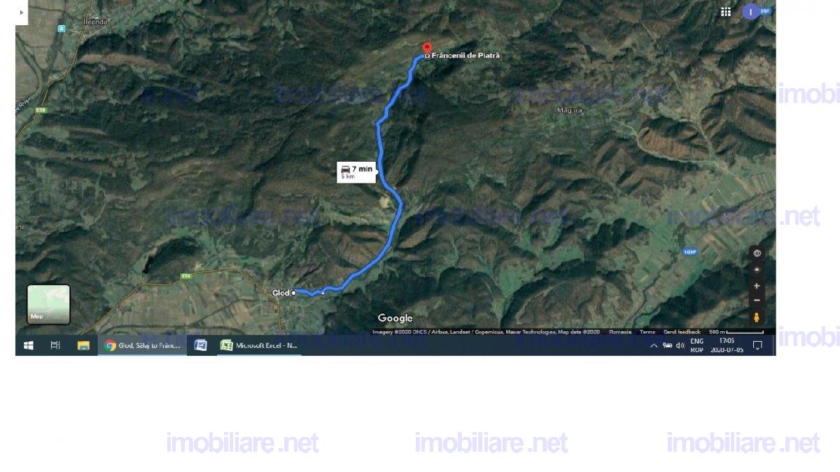 Vând teren cu o suprafață de 3300mp, într-un cadru natural de excepție, la poalele muntelui, situat în intravilanul localității Frâncenii de Piatră, Glod, aparținând de comuna Gâlgău, Sălaj, intabulat Extras CF nr.52264 Gâlgău, Sălaj. Terenul se alfă la 7min. de mers pe drum asfaltat din drumul european E58 satul Glod și la 80km față de Cluj-Napoca. Proprietatea cu acces direct la drumul principal asfaltat și front stradal de 17m, cu acces la rețeaua electrică publică și rețele de telefonie și internet, acces la izvor cu apă de munte în imediata apropiere, este ideală pentru construirea unei case de vacanță sau dezvoltarea unei activități agroturistice,etc. Frâncenii de Piatră este un sat pitoresc cu peisaje naturale impresionante si aer curat de munte, păduri dese, dealuri verzi și râuri cu apă curată de munte care traversează zona. Oferta se adresează atât iubitorilor de natură cît și ca o foarte buna oportunitate de investitie cu avanataje multiple.