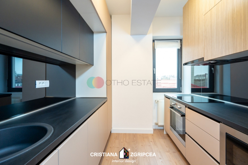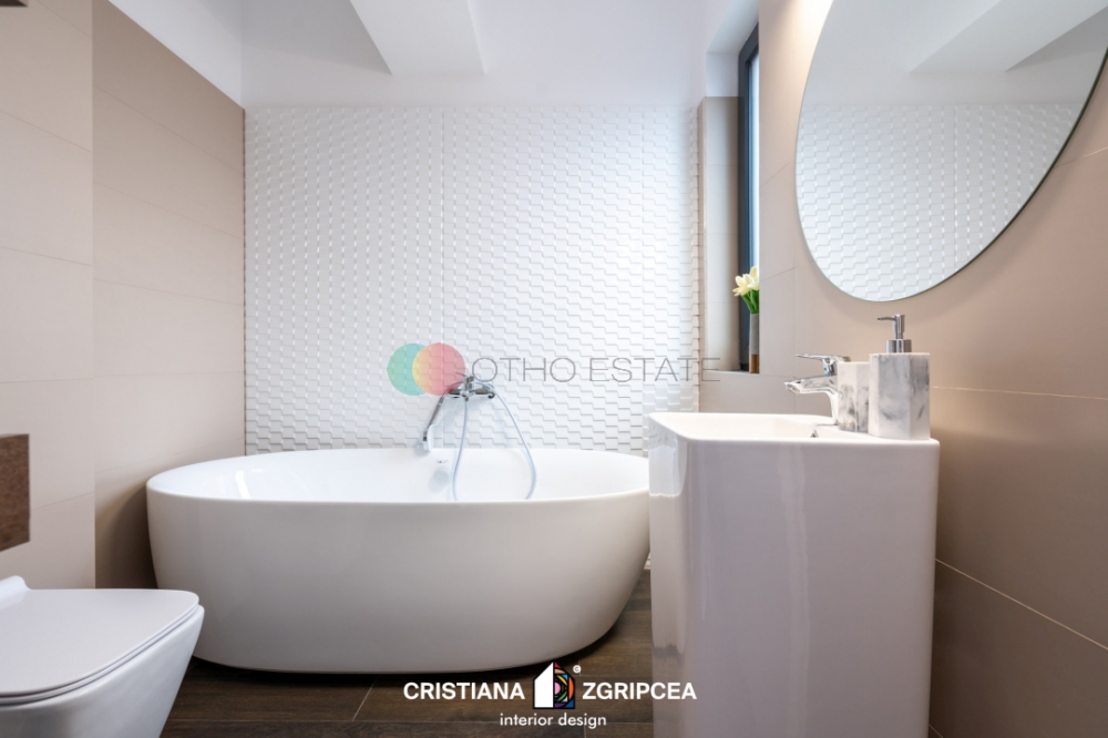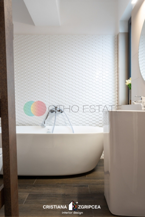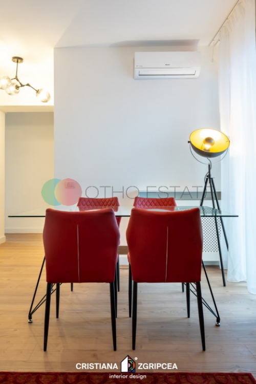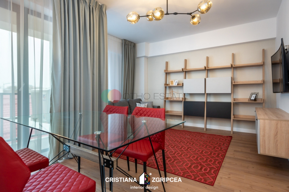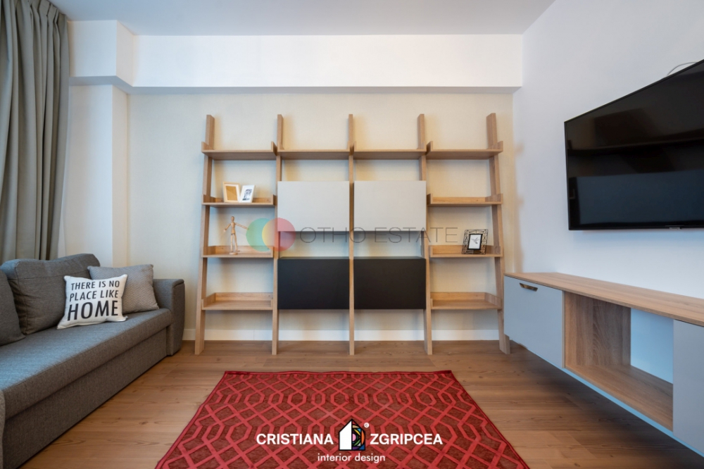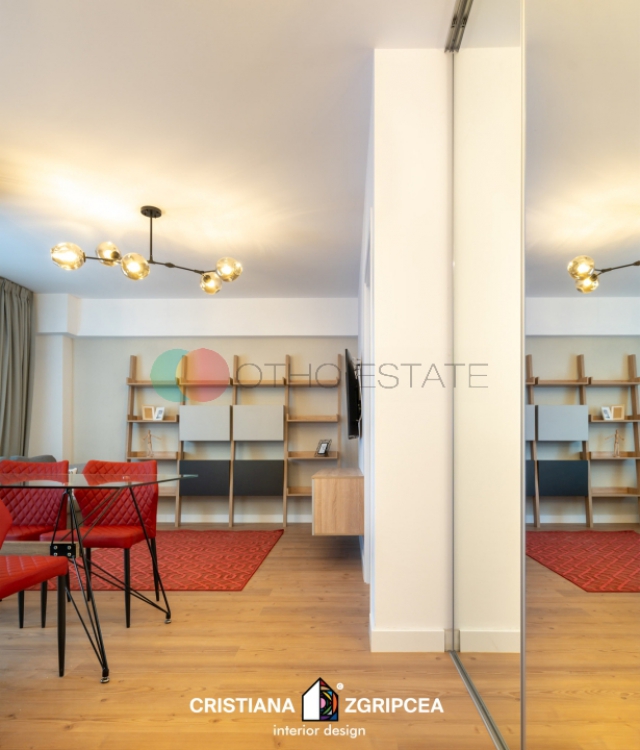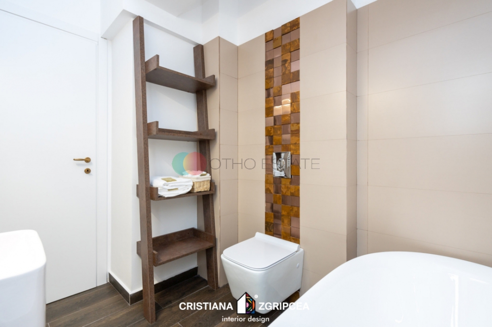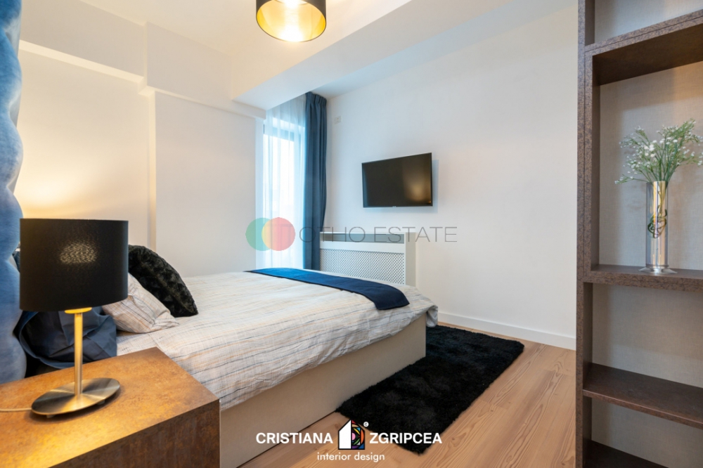 Apartamentul este la prima inchiriere si dispune de un design modern cu finisaje de cea mai buna calitate.Designul interior a fost conceput de o echipa de arhitecti profesionisti, oferindu apartamentului o eleganta si un stil deosebit. Amprenta designerului este prezenta in intreg spatiul, contribuind din plin la crearea unui spatiu impresionant, cu personalitate, unic, rafinat. Culorile, texturile, accesorizarea, mobilierul de calitate, toate sunt alese cu grija, nefiind lasat nimic la voia intamplarii.
