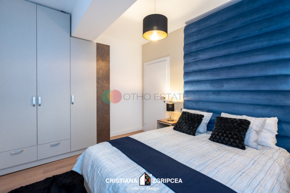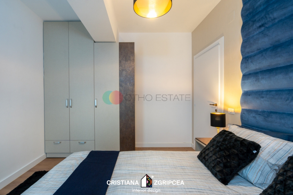 Apartamentul dispune de finisaje si mobilier din gama premium, pe comanda. Electrocasnicele sunt varf de gama, existand televizor SMART LED 4K UHD cu ecran curbat in living si TV Smart Led in dormitoar, aer conditionat inverter in fiecare camera, sanitare Delta Studio, electrocasnice incorporabile in bucatarie, internet wireless de mare viteza, etc. Apartamentul dispune de un loc de parcare suprateran.