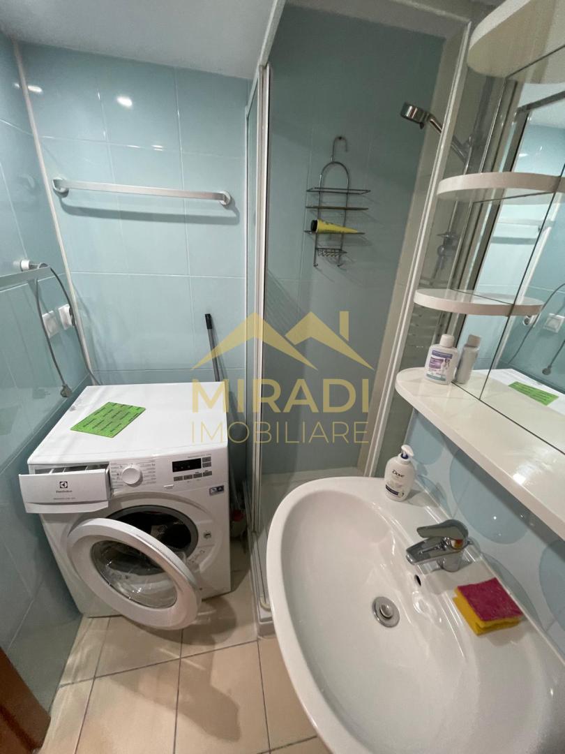 Garsoniera este mobilata si utilata asa cum se observa din fotografii. Este libera,  iar ca si imbunatatri avem parchet, gresie ,faianta,aer conditionat,masina de spalat rufe.