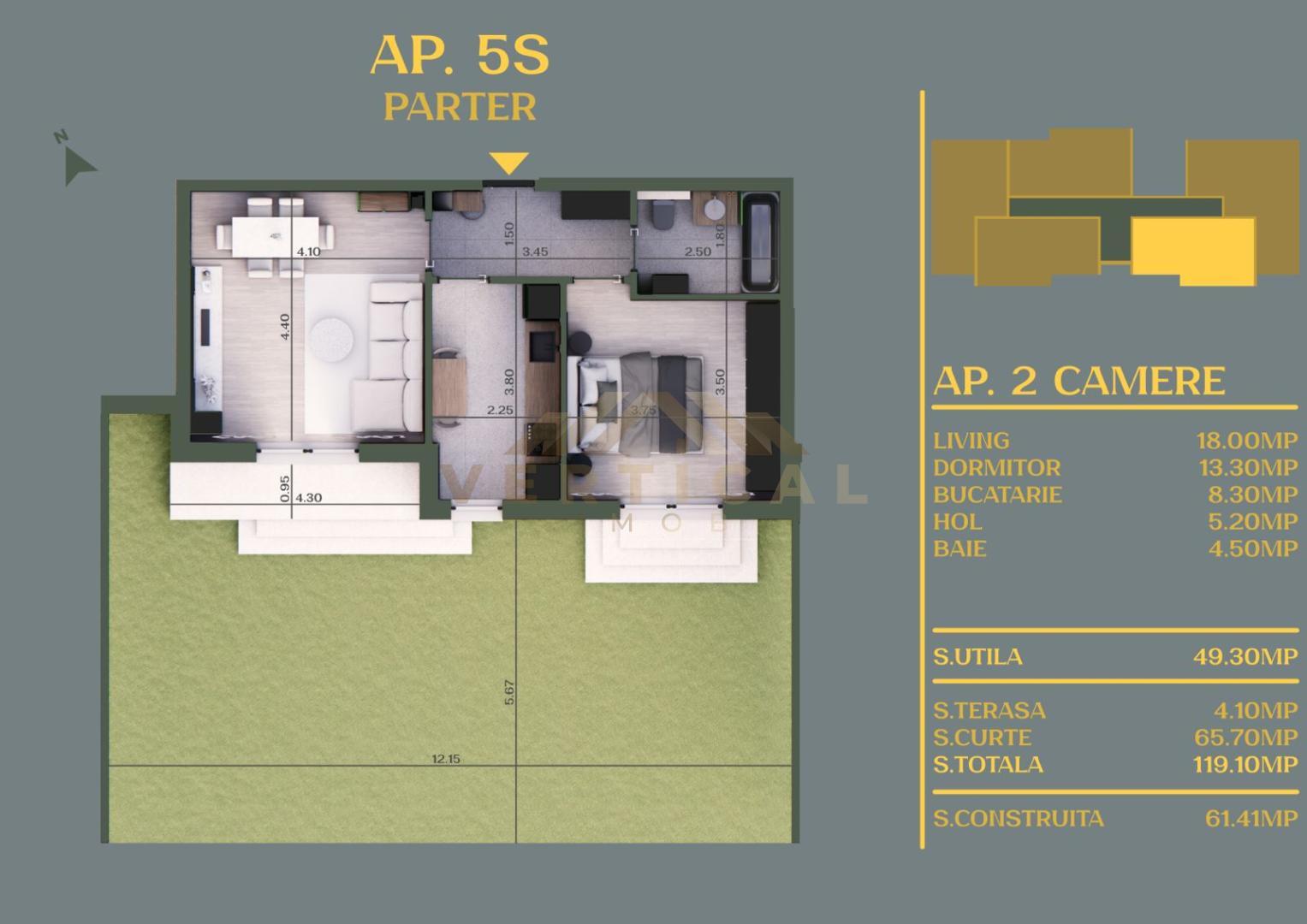 Suprafata utila este de 72 mp si curtea are 230 mp