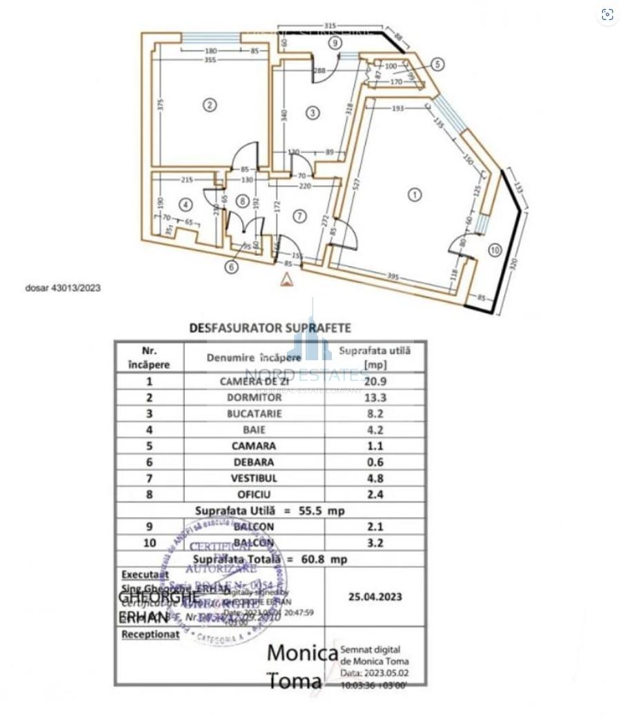 -Are o suprafata de 61mp total utili (aici nu am luat in calcul suprafata utilizata exclusiv, care este mai mare, ci doar cea din acte);