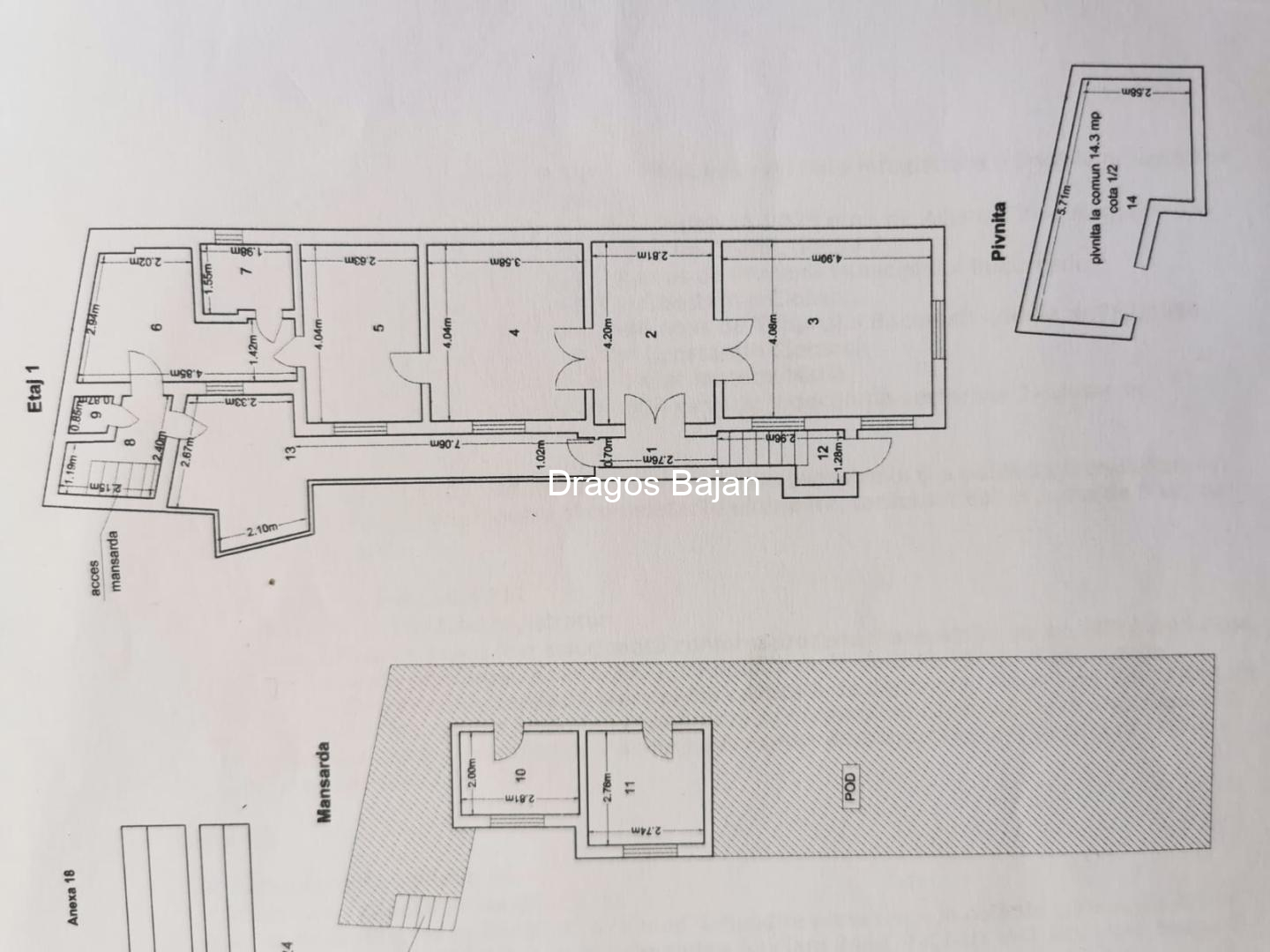 Imobilul a fost construit spre sfarsitul anilor 40, initial ca locuinta pentru o singura familie. Ulterior, a fost impartit in doua apartamente. Apartamentul de vanzare ocupa intregul etaj 1, iar deasupra acestuia se afla mansarda (podul), care este in proprietate exclusiva, cu acces doar din apartament.