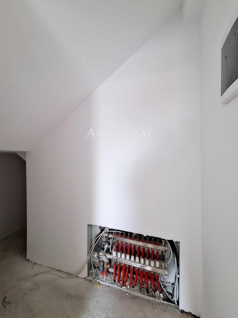 Proprietatea este racordată la toate utilitățile publice (electricitate, gaze, canalizare și apă) și dispune de dotări moderne, printre care se numără instalația de panouri solare de 5KW, care contribuie la eficiența energetică a locuinței, încălzire în pardoseală InnoFloor cu automatizare pe fiecare cameră, centrală termică pe gaz Immergas Victrix Zeus Superior cu boiler încorporat, tâmplărie PVC clasa A VEKA cu geam tripan, tavane din rigips cu scafe pentru perdele și bandă LED, obiecte sanitare Roca.