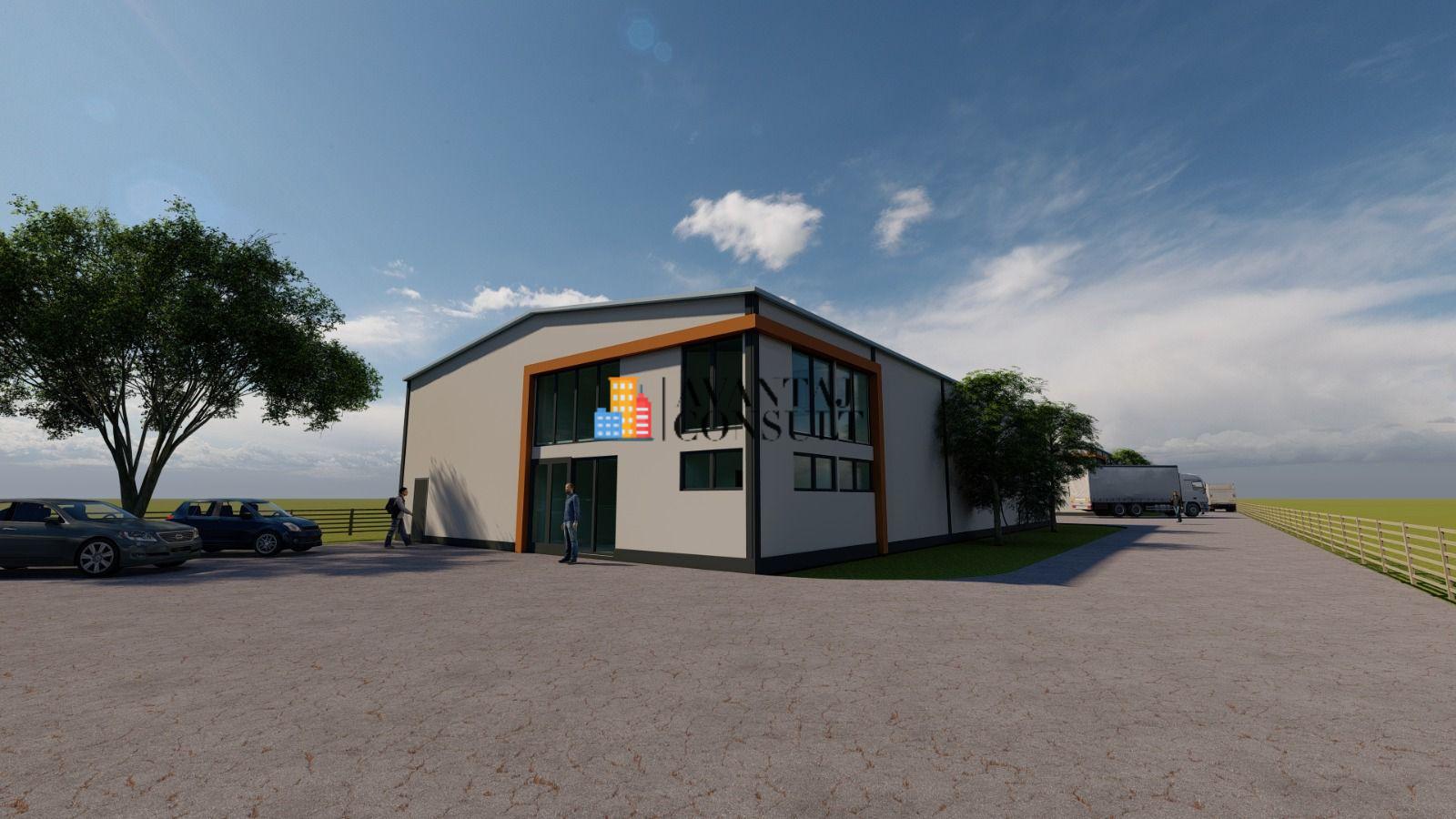 hala 450 mp suprafata construita, din care depozit la parte 422 mp, birou la etaj 49 mp, grup sanitar. Hale construite pe structura metalica cu inchidere cu panouri termoizolante cu spuma poliuretanica PIR/PUR 10 cm, acces tir, usa acces marfa 4,5 x4,5, pardoseala quartz 5t/mp, inaltime la coama 7 m si lateral 6m, deschidere libera fara stalpi pe mijloc 15.53m, lungime hala 29.6m. Halele vor fi dotate cu luminatoare care vor asigura .lumina naturala si aerisirea . Putere instalata 50KVA, acces usor catre A2 si A0.Halele sunt in constructie. Halele se preteaza pentru mica productie si depozitare, confectie metalica cu panouri, in constructie, constr. 2026, putere alocata : 50kW, inaltime : 7m, electricitate, grup sanitar, acces sosea, acces tir, trifazic